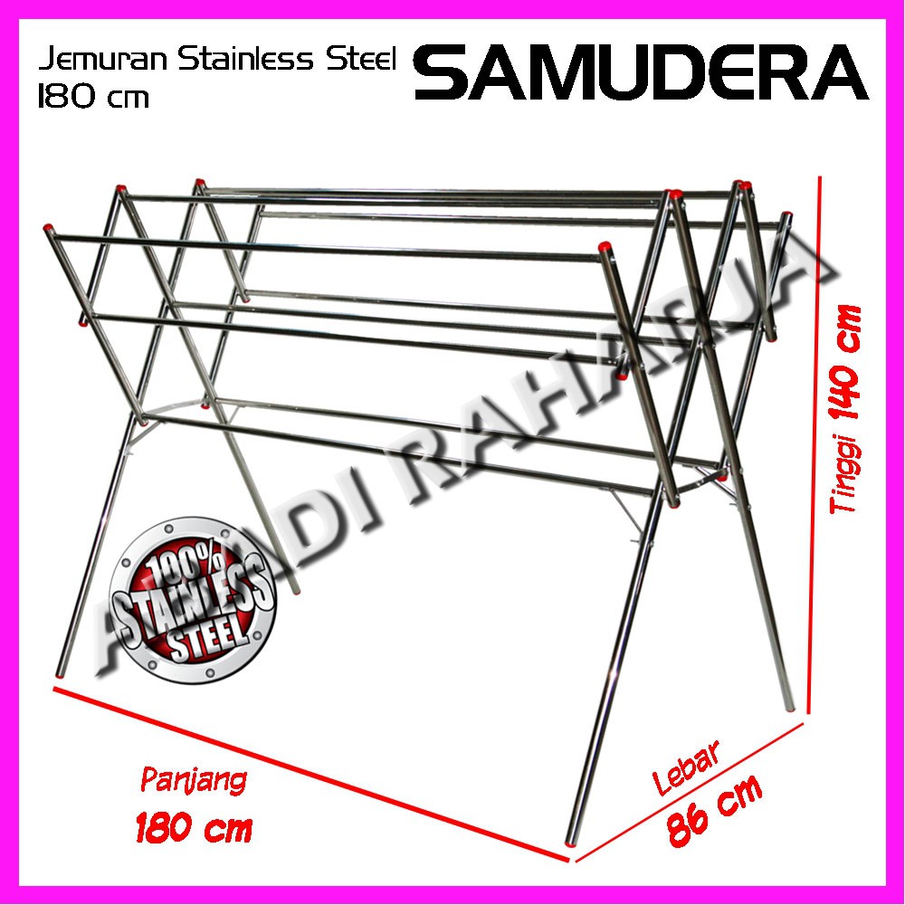 Jemuran baju stainless steel samudera a asli bina karya kuat dan anti karat tidak gampang patah tiang dan pipa besar ukuran tiang.28 mm hampir 3 cm pipa.19 mm hampir 2 cm ukuran :